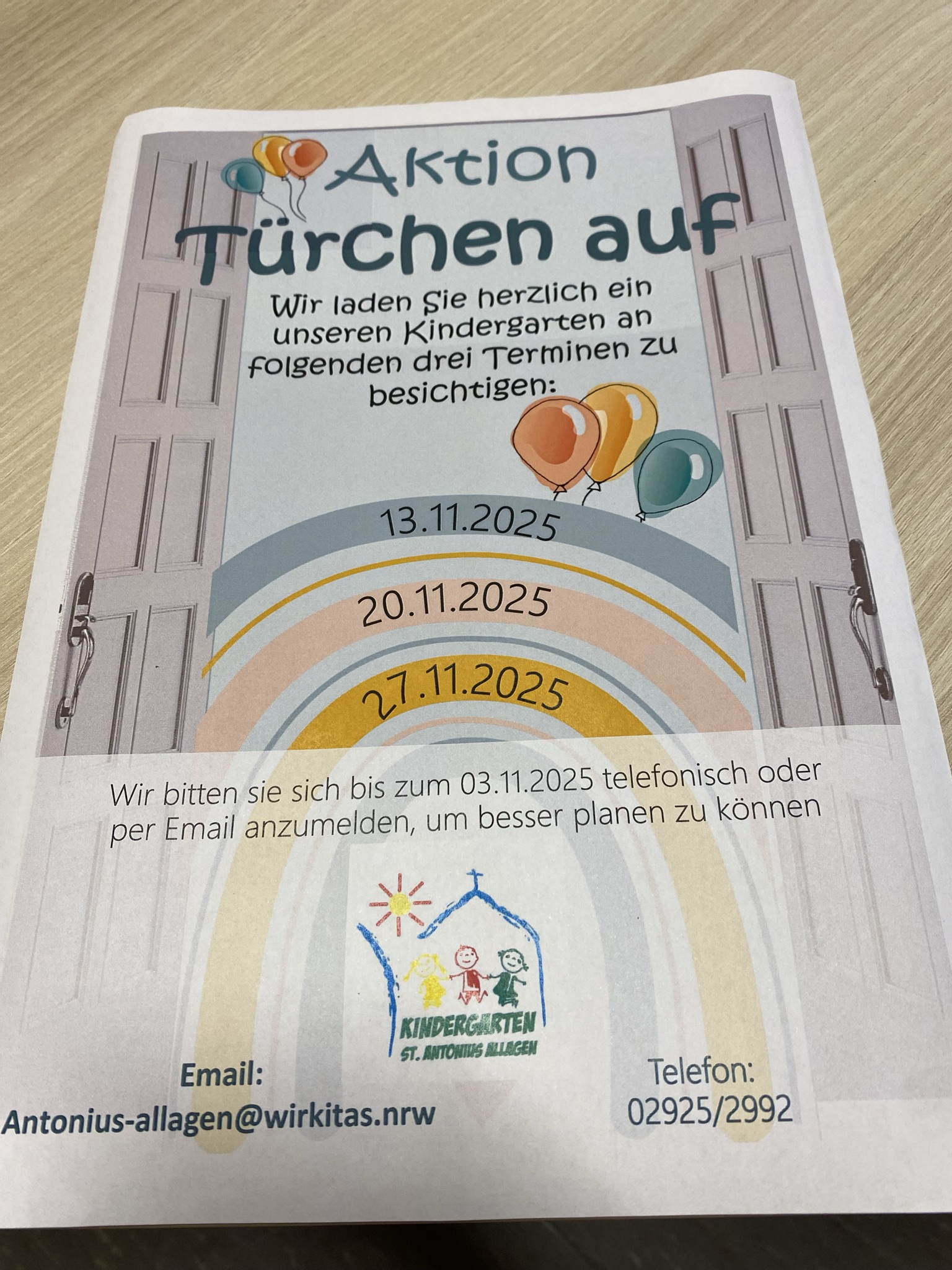 Dieses Jahr bieten wir die Aktion „Türchen auf“ an! Sie können sich gerne telefonisch oder per E-mal für einen dieser Tage anmelden. Wir freuen uns auf Sie und Ihr Kind!